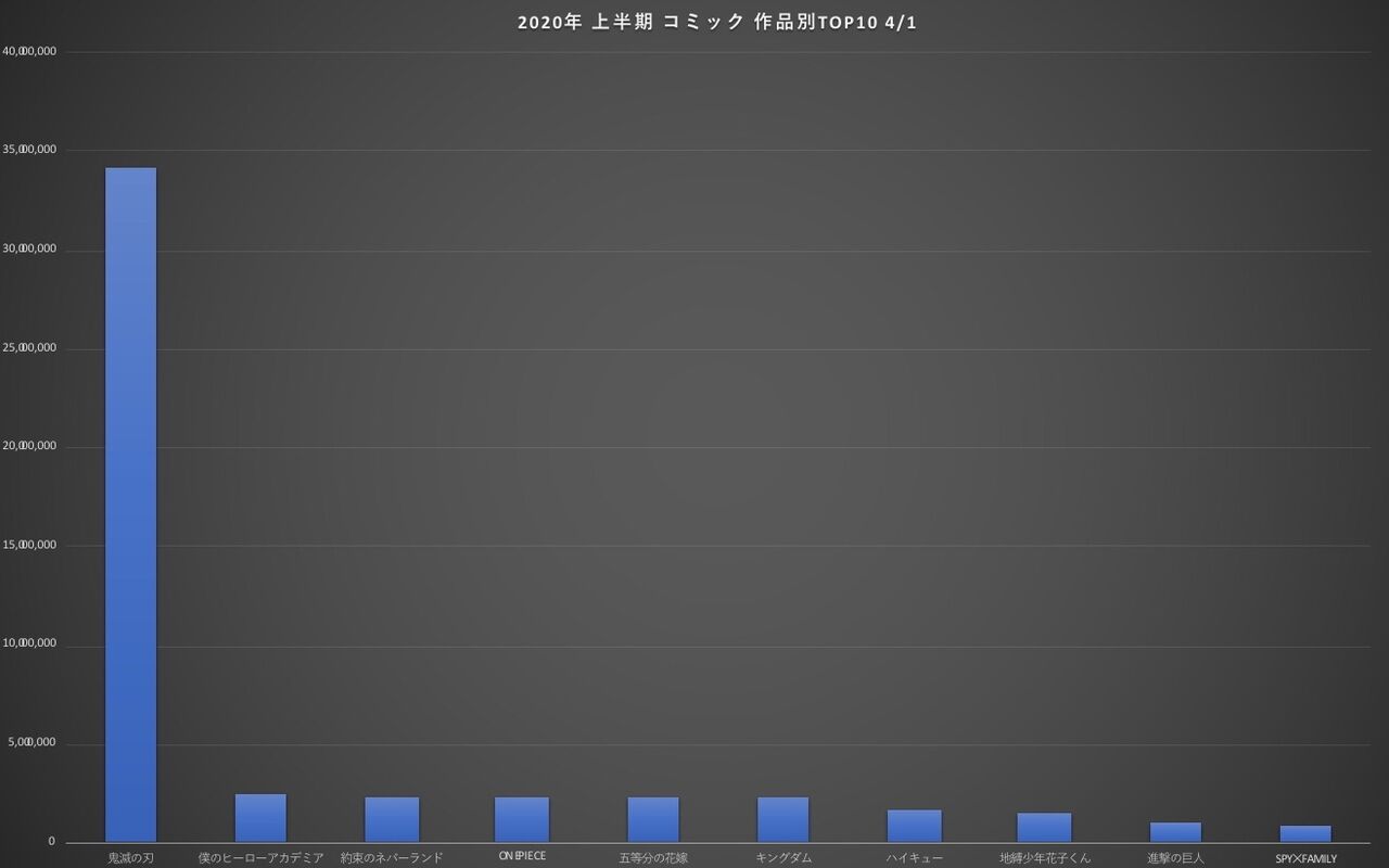 2019年11月18日から2020年3月29日までのコミックシリーズ年間作品別